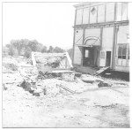 The center of New Hartford’s North Village looking downstream. The Star Theater and the remains of the Bridge Street bridge over the Farmington River following the 1955 Flood.